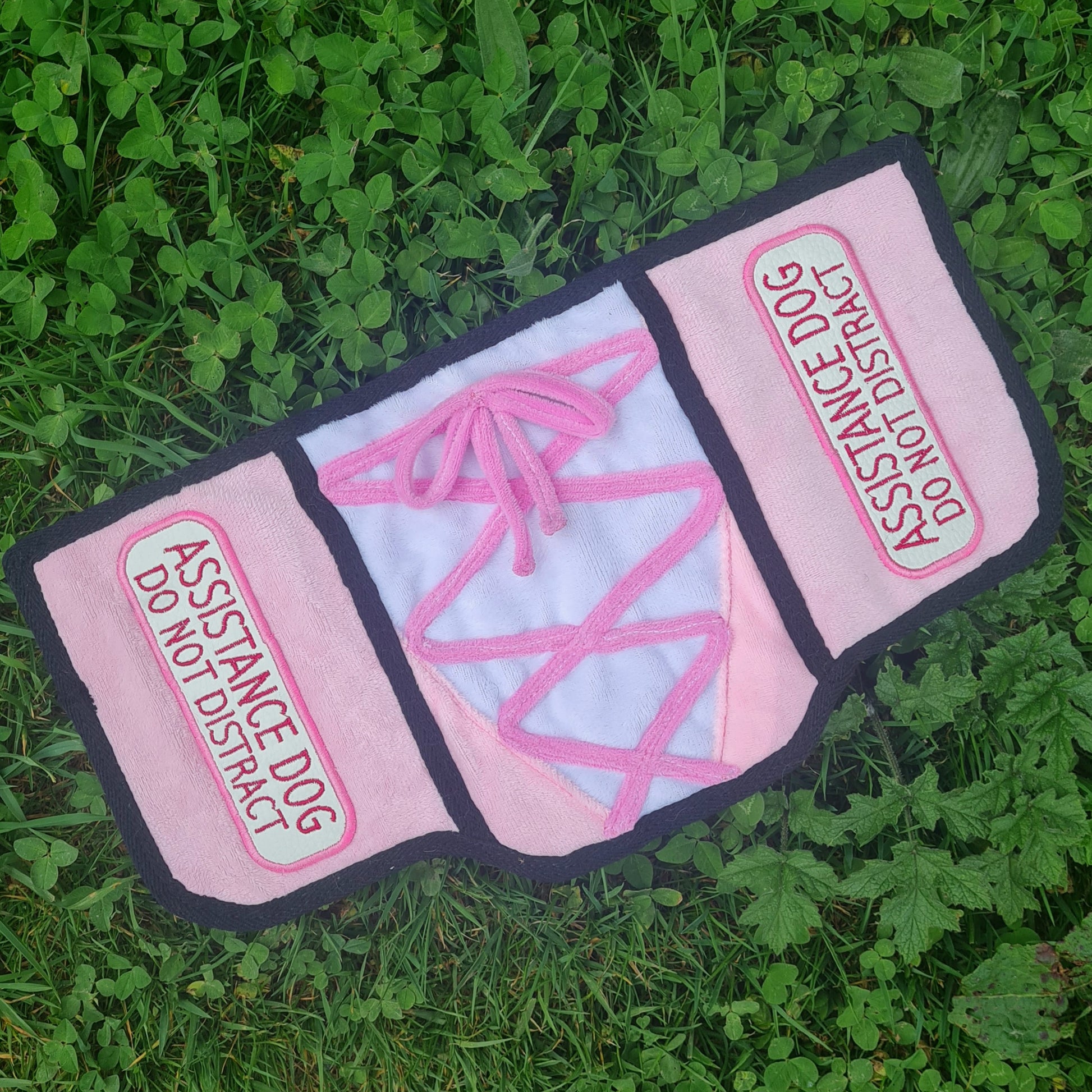 A darling addition to your little lady's wardrobe, this premade features soft pink and white plush fabric, with 3D laces and bow for that extra je ne sais quoi! Completed with simple, professional sewn-on patches perfect for getting the message across in style. Straps will be added at purchase to ensure the perfect fit