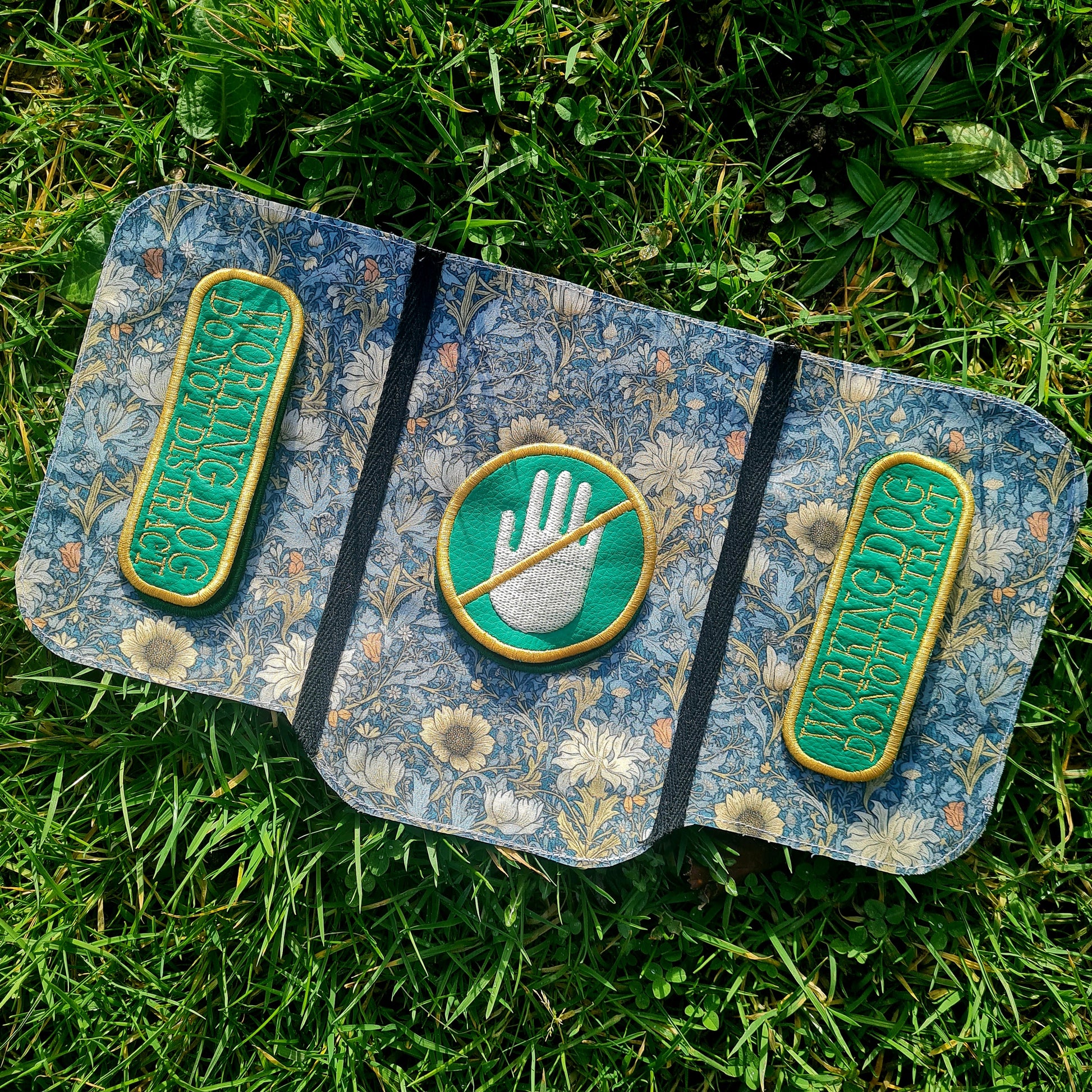 Professional, pretty, and perfectly floral; this premade comes with simple, professional velcro 4cm x 12cm side patches and an 8cm x 8cm back patch included!