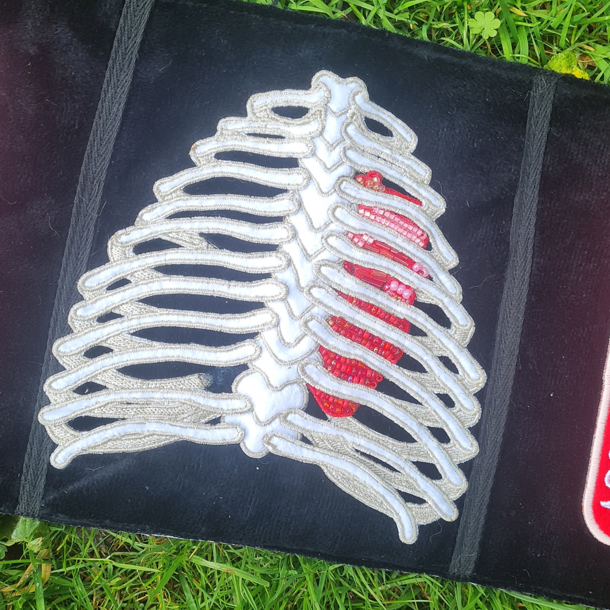 Show off your 'heart' dog in appropriately Halloween-y style with this dog-anatomy-accurate ribcage & beaded heart premade!